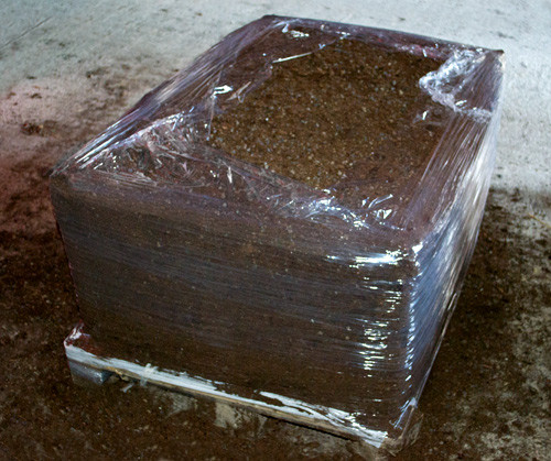 Der Big-Bale wird mithilfe eines Gabelstaplers oder E-Hubwagen eingesetzt. Nach dem Fahrstuhl-Prinzip wird der Erdballen nach oben gefahren, wo das Substrat gleichmäßig abgefräst wird.
