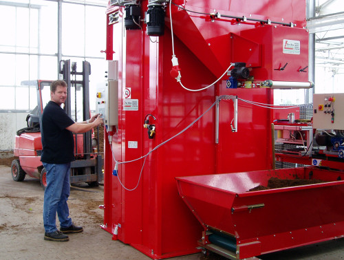 Der platzsparende Big-Bale Zerkleinerer ist mit einer elektronischen Steuerung für das automatische Befüllen anderer Maschinen (z. B. Maschinen zum Umpflanzen, Topf- und Tray-Füllmaschinen) ausgerüstet.