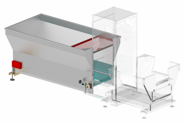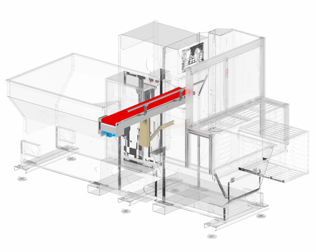 Das Pikierband lässt sich gerade oder seitlich anbringen. Überschüssige Erde wird durch ein kleines Förderband wieder in den 650-Liter-Erdbunker zurückgeführt.