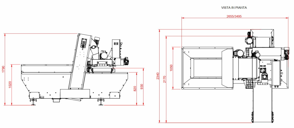 Bei den Maschinen RC7-TR5C (650 Liter Erdbunker) und RC7-TR5 (1200 Liter Erdbunker) ist die Laufrichtung der Kisten von rechts nach links, da diese Maschinen einen Rückführbehälter und einen Speicherbehälter haben.