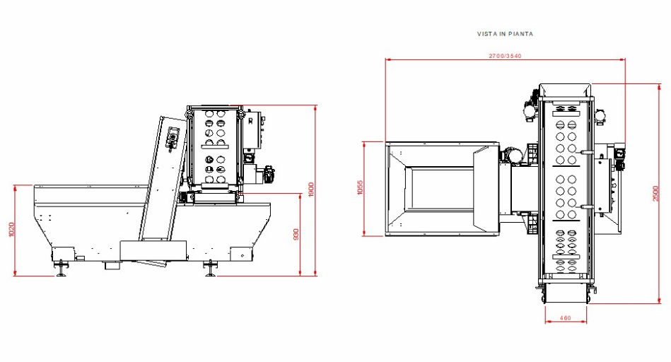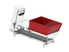 Bei den Maschinen RC5-TR5C (650 Liter Erdbunker) und RC5-TR5 (1200 Liter Erdbunker) ist die Laufrichtung der Kisten von rechts nach links, da diese Maschinen einen Rückführbehälter und einen Speicherbehälter haben.