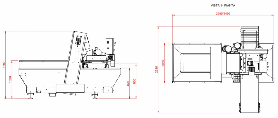Bei den Maschinen RC2-TR5C (650 Liter Erdbunker) und RC2-TR5 (1200 Liter Erdbunker) ist die Laufrichtung der Kisten von rechts nach links, da diese Maschinen einen Rückführbehälter und einen Speicherbehälter haben.