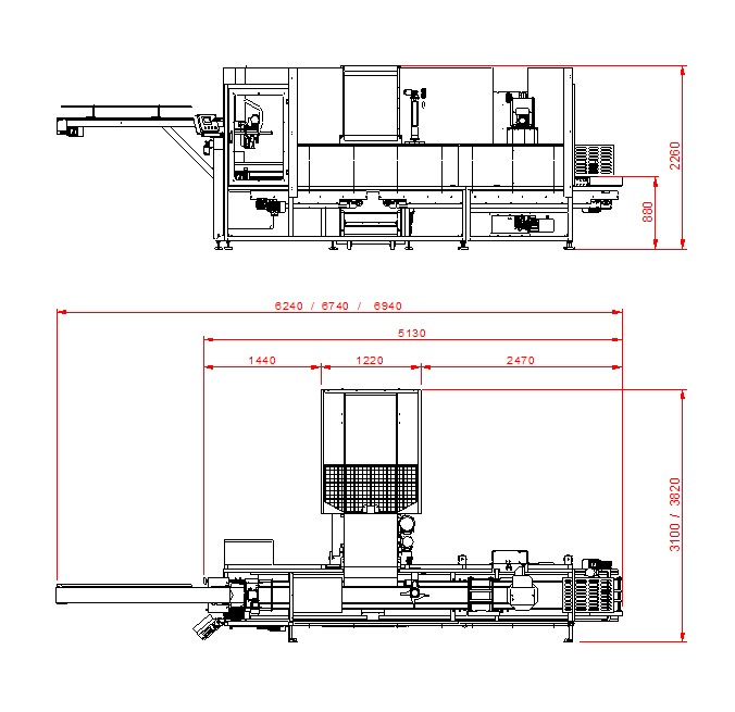 Die Töpfe (15-30 cm) werden über ein 1,6 m langes Topfspeicherband zur Topfentstapelung geführt und auf einem Transportband entstapelt.