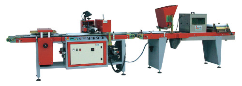 Produktionslinie mit Trayfüllmaschine RC1200, mitlaufender Stanze, Walzensägerät R30, Abstreuer mit Bunker, Bewässerung und Aufstapelung