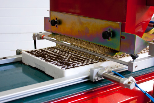 Die Sälinie LS7-3 verarbeitet fast jede Art von Tray. Die Sästelle wird in der ersten Station vorgestanzt, in der zweiten Station mit nackten oder pillierten Samen im Einzel- oder Mehrkornverfahren besät und in der dritten bewässert und abgestreut.